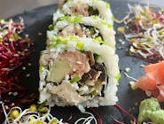 PINK SEVICHE FUTOMAKI (różowy ryż, sałatka seviche na wierzchu ) 6 szt.